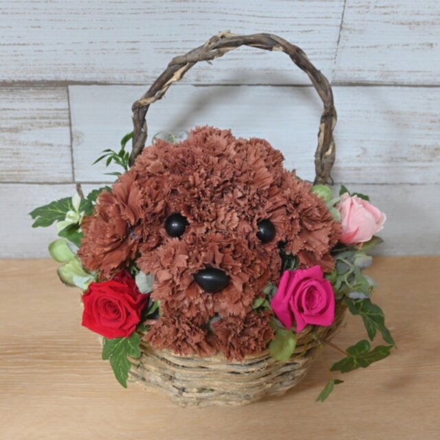 壁掛け トイプードル 2way プリザーブドフラワー カーネーション 母の日 犬 花 フラワーアレンジメントiichi 日々の 暮らしを心地よくするハンドメイドやアンティークのマーケットプレイス。