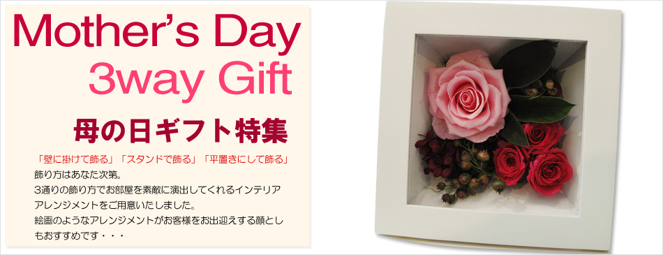 3WAY 壁掛け 母の日ギフトプリザーブドフラワー専門店の花太陽雨。