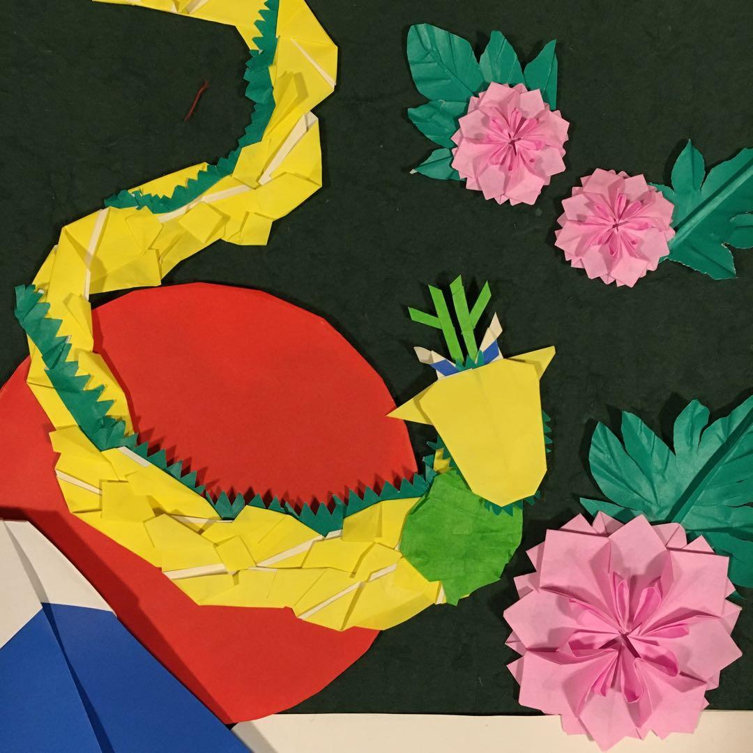 お正月の折り紙飾り『へび富士山の新年飾り』。