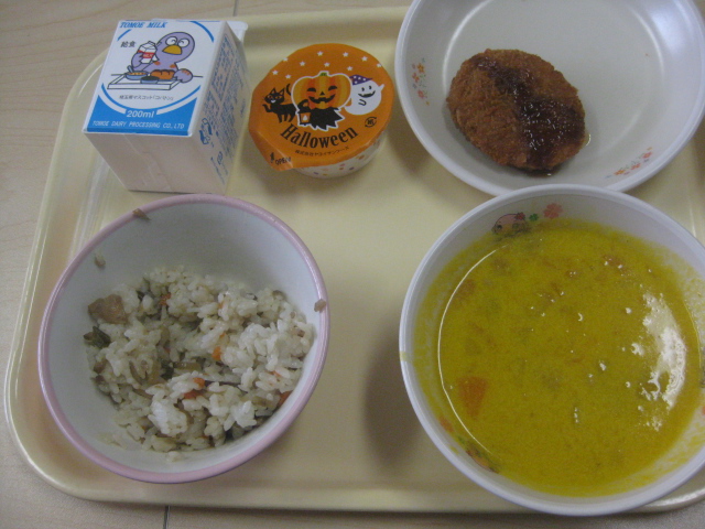 今日の給食! ~ハロウィン献立~戸沢村立戸沢学園。