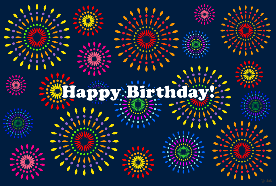 花火の誕生日カードイラストのフリー素材イラストイメージ。