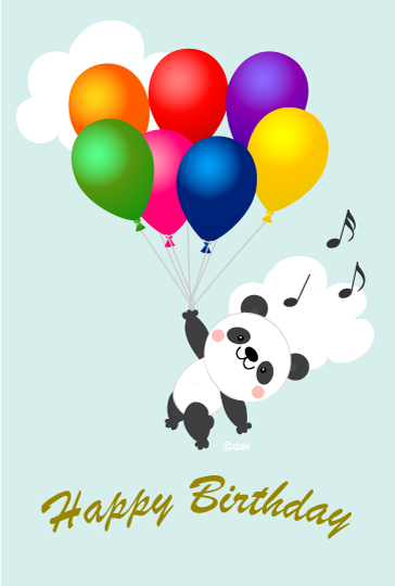 空飛ぶパンダの誕生日カードイラストのフリー素材イラストイメージ。