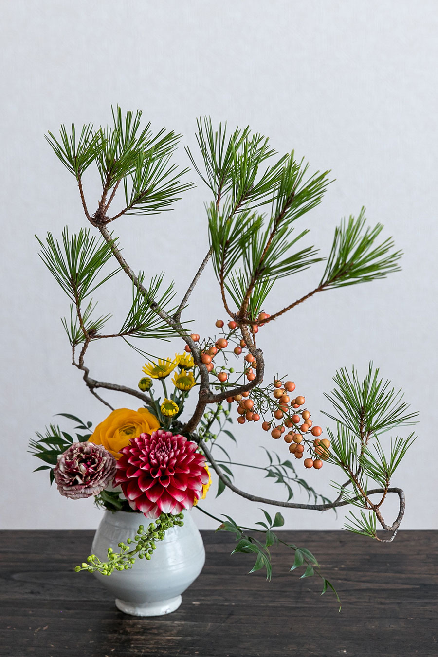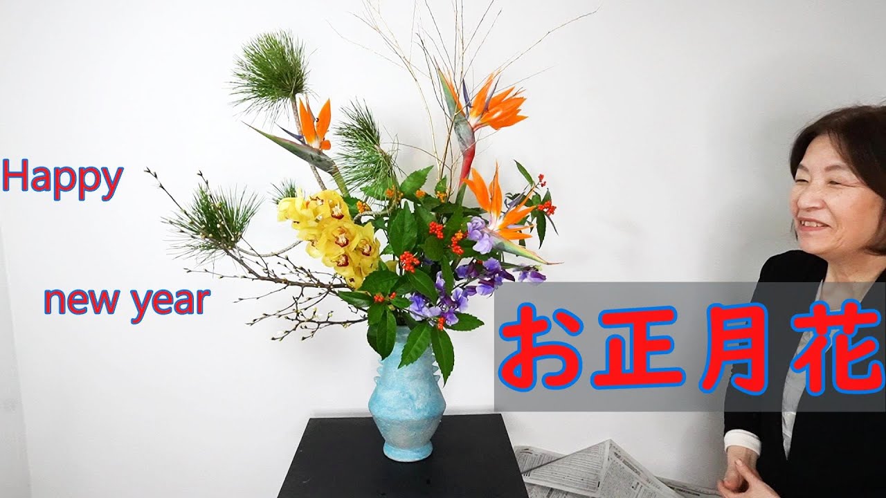 生け花 初心者必見!3つのポイントで「本格」お正月花の生け方を詳しく解説!!! Ikebana 松 菊 千両いけばな 古流かたばみ会。