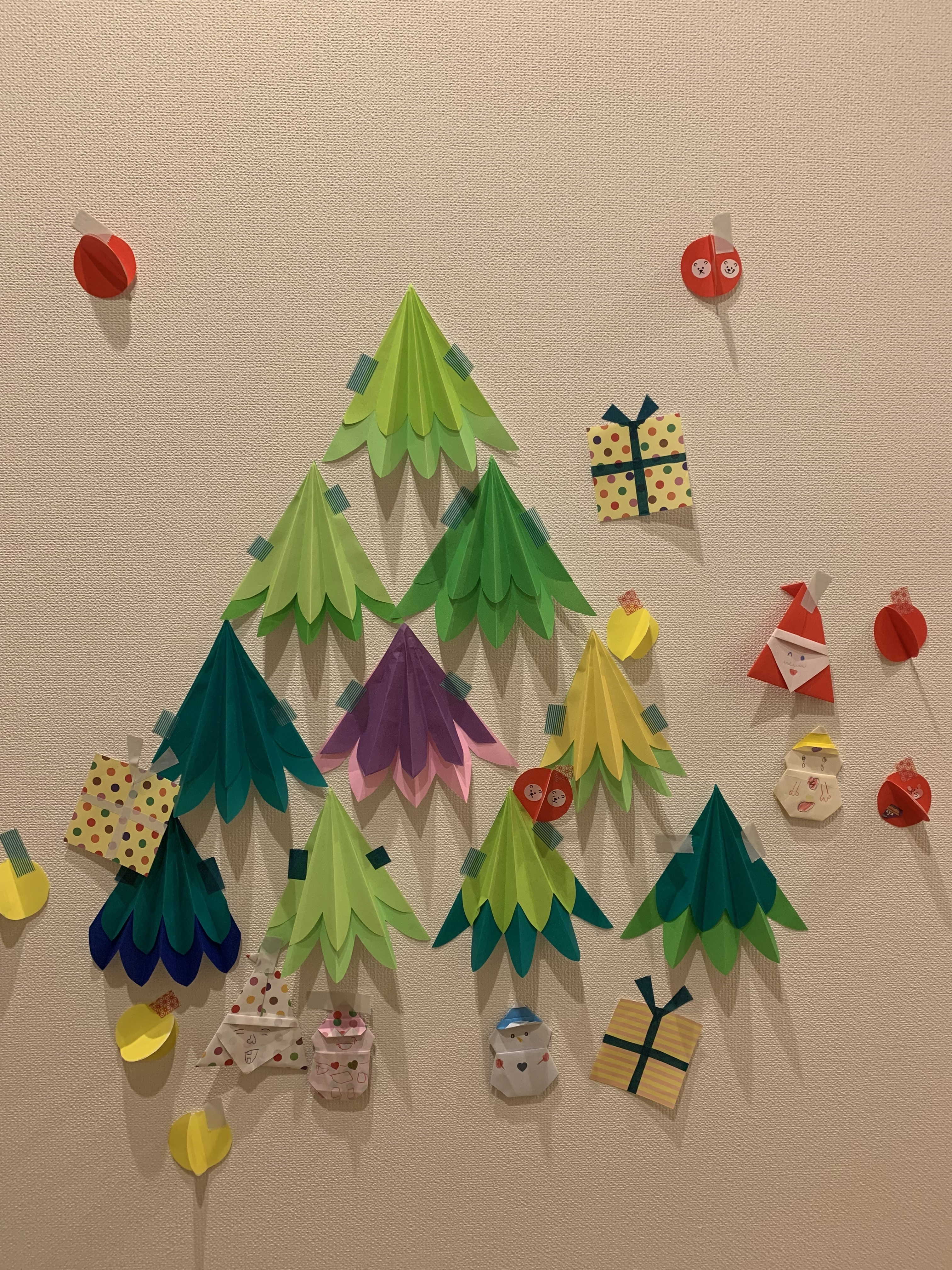 無料ダウンロード型紙で「クリスマスツリー」の壁面飾りを作ってみた!保育 介護施設 壁面装飾 製作 冬 12月壁面飾り型紙工房。