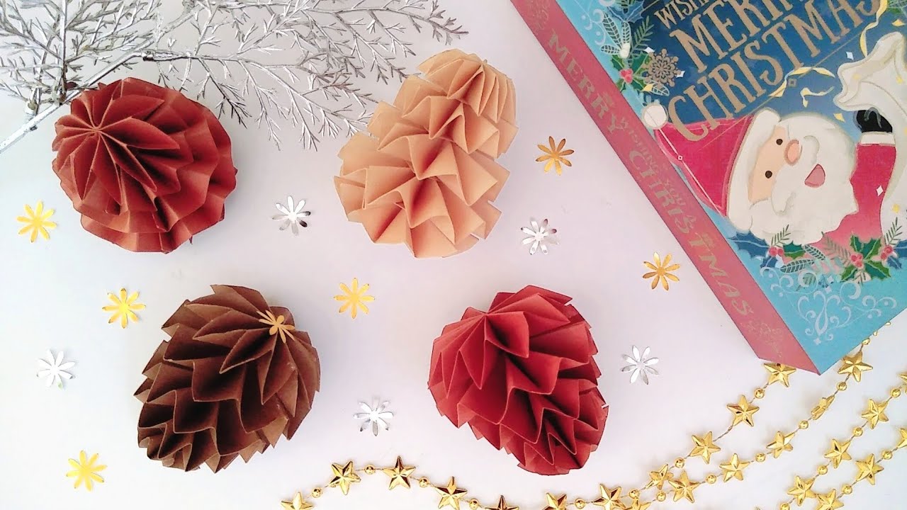 簡単 『松ぼっくり』の作り方・折り方動画 クリスマス飾り 100均画用紙と折り紙 クリスマスオーナメント DIY Christmas ornamentdecoration - 介護士しげゆきブログ 画用紙工作編。