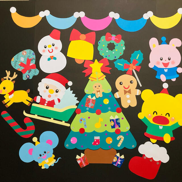 クリスマス ツリー サンタさん トナカイ 画用紙 壁面飾り ガーランド 保育教材 - ruu1234minne byGMOペパボ国内最大級のハンドメイド・手作り通販サイト。