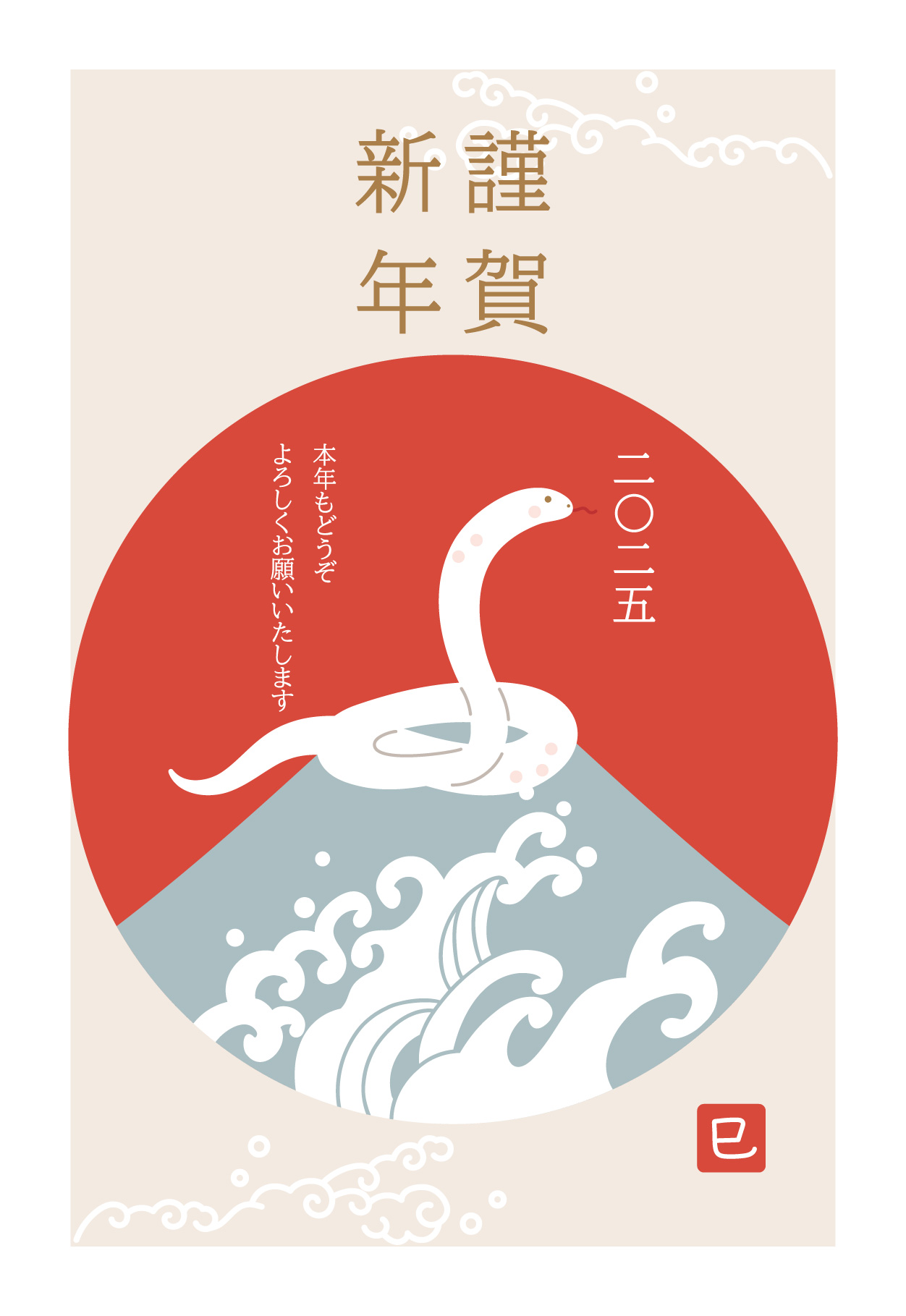 年賀状2025 令和7年・巳年・へび 無料素材。