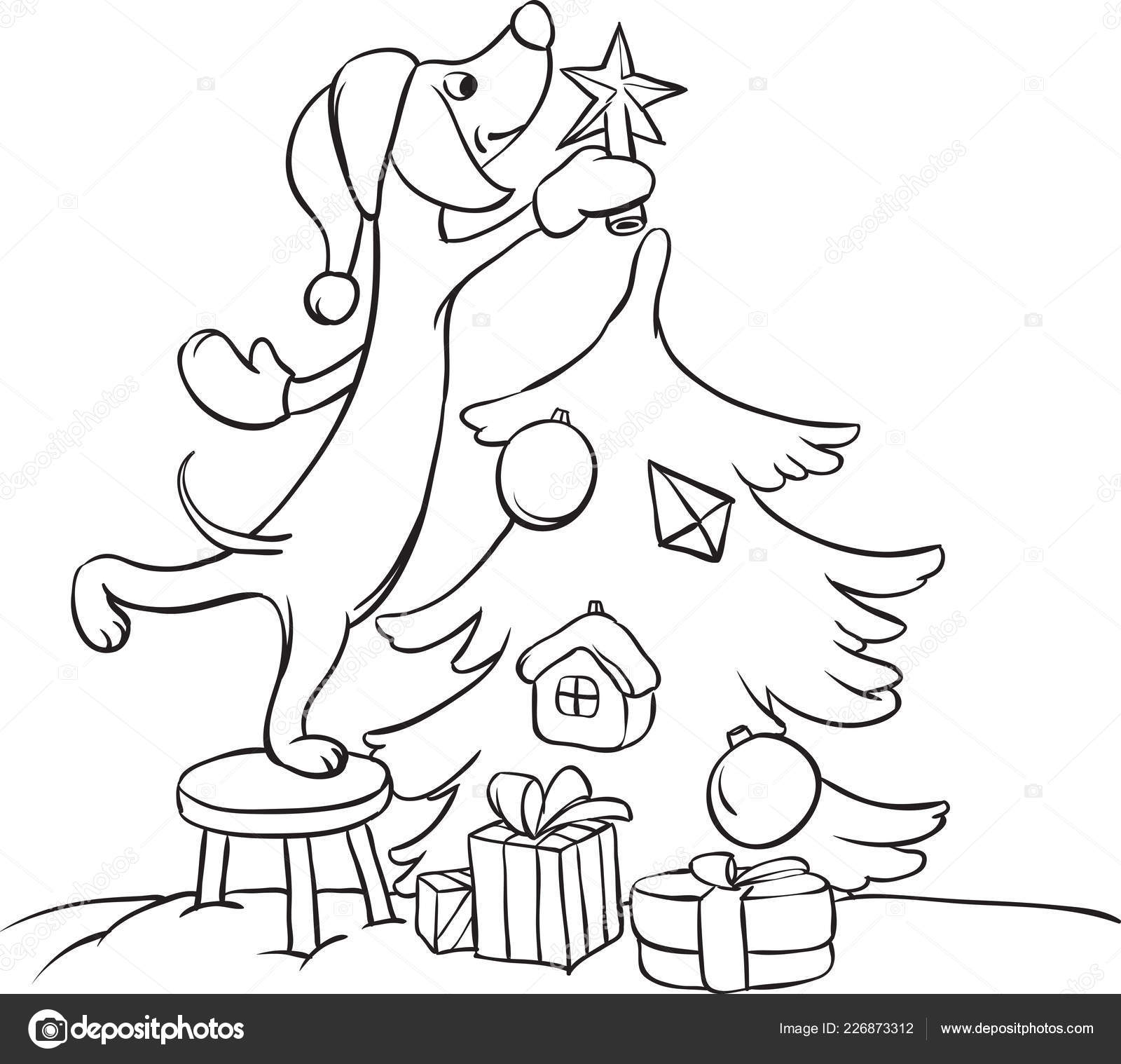 ホワイト ボード描画 漫画犬のクリスマス ツリーを配置 ストックベクター ©OneLineStock 226873312。