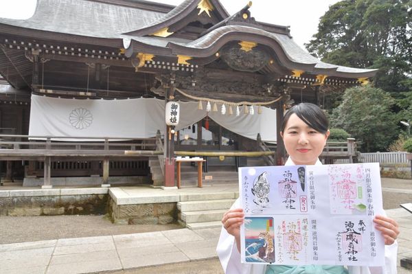 いばらき御朱印めぐり 現代的な絵柄や文字 茨城・ひたちなか 酒列磯前神社 端末駆使してデザインきたかんナビ。