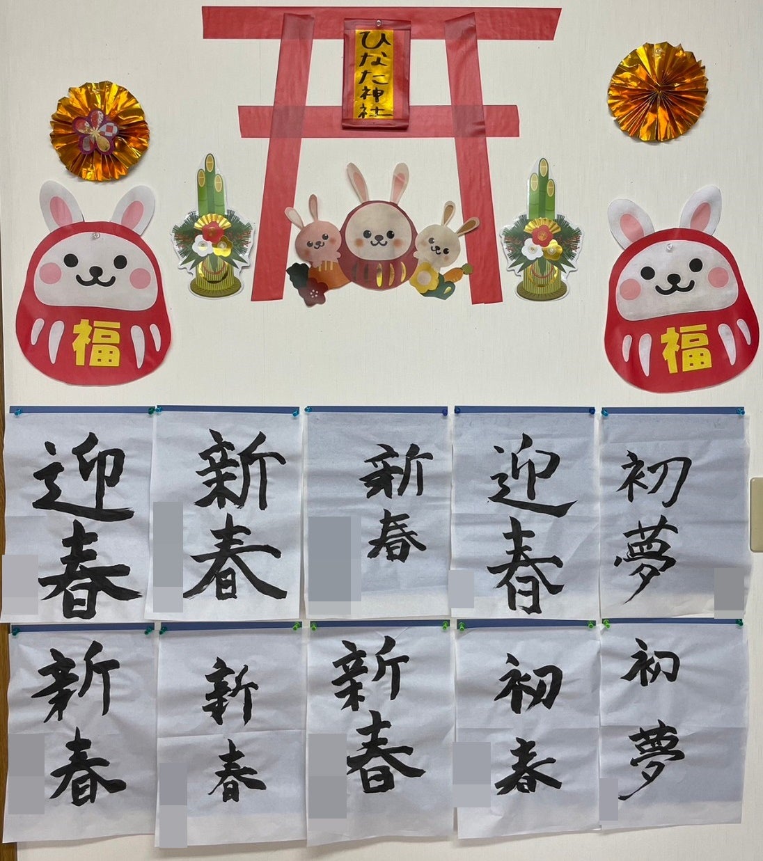 あずみ苑スタッフぶろぐレオパレス21グループの介護施設 : お正月の壁画作りを行いました 各務原市「あずみ苑各務原」。