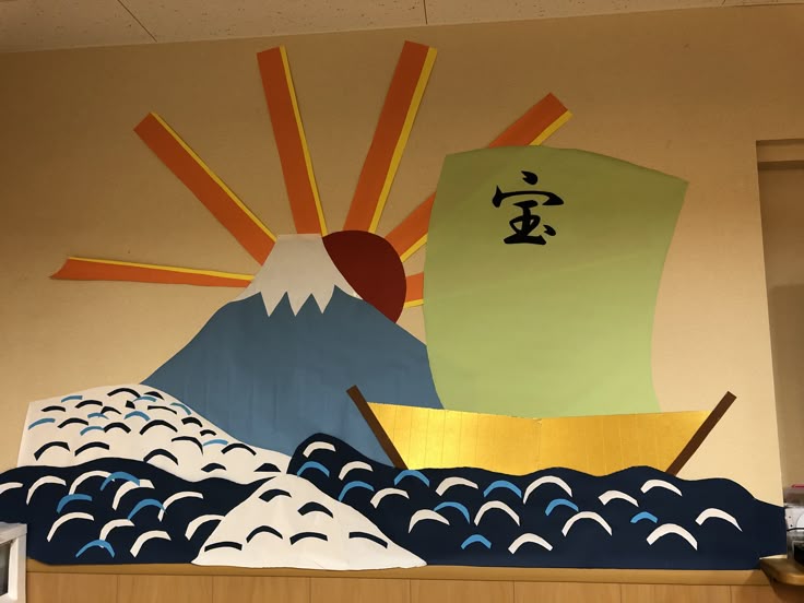 デイサービスの新年の壁画!! 宝船に新年の抱負を飾ります。