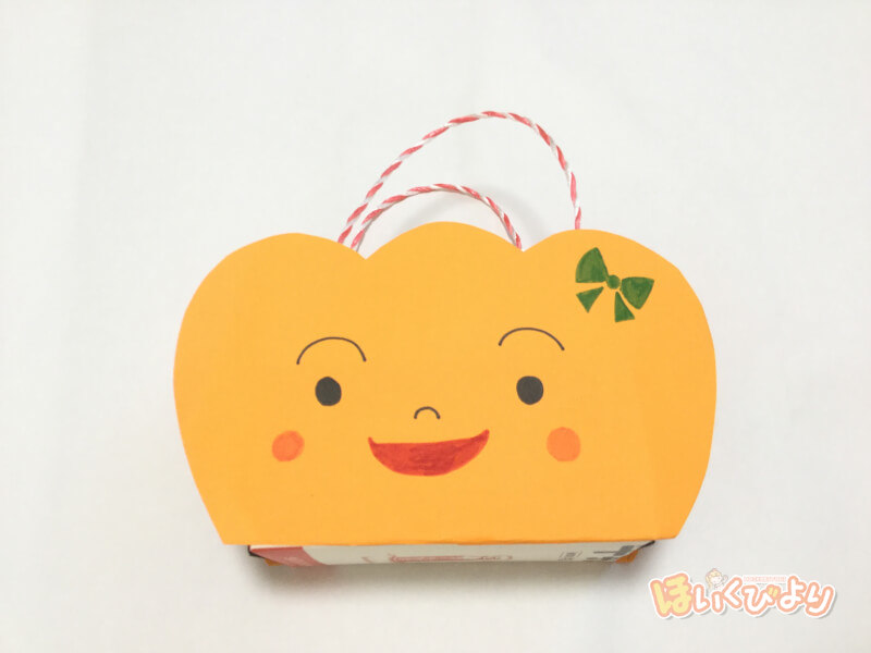 ハロウィンのトリックオアトリートごっこ遊びに。牛乳パックで簡単!かぼちゃのバッグの作り方ほいくびより。