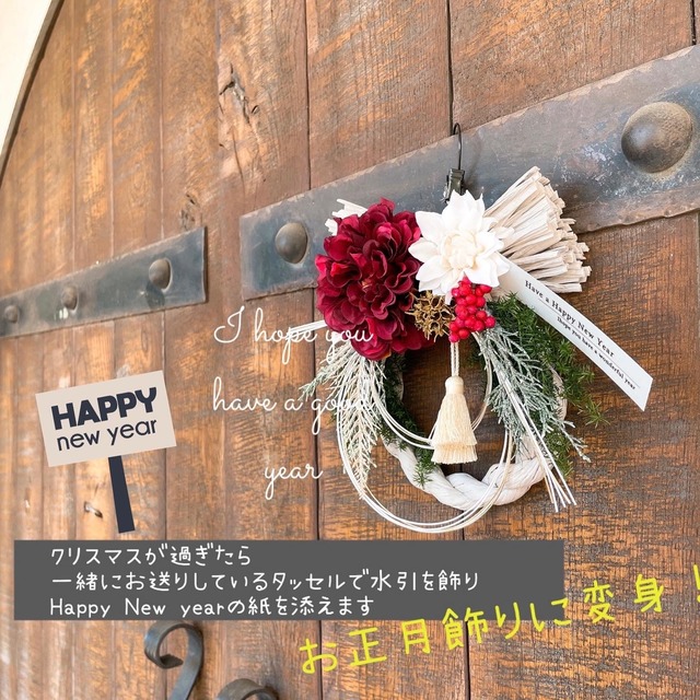 Amazon.co.jp: お正月飾り 和モダンレッド NYナチュラルしめ縄 注連縄 しめ飾り 水引飾り お正月リース NY332 薫る花 おしゃれモダン ナチュラル 玄関ドア 材料 手作り 花 フラワー : ホーム&キッチン。