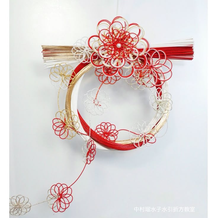 迎春 お正月飾り 水引細工 水引飾り 紅白 大 お正月リース 玄関 インテリア森田和紙オンラインショップ 倭紙の店。
