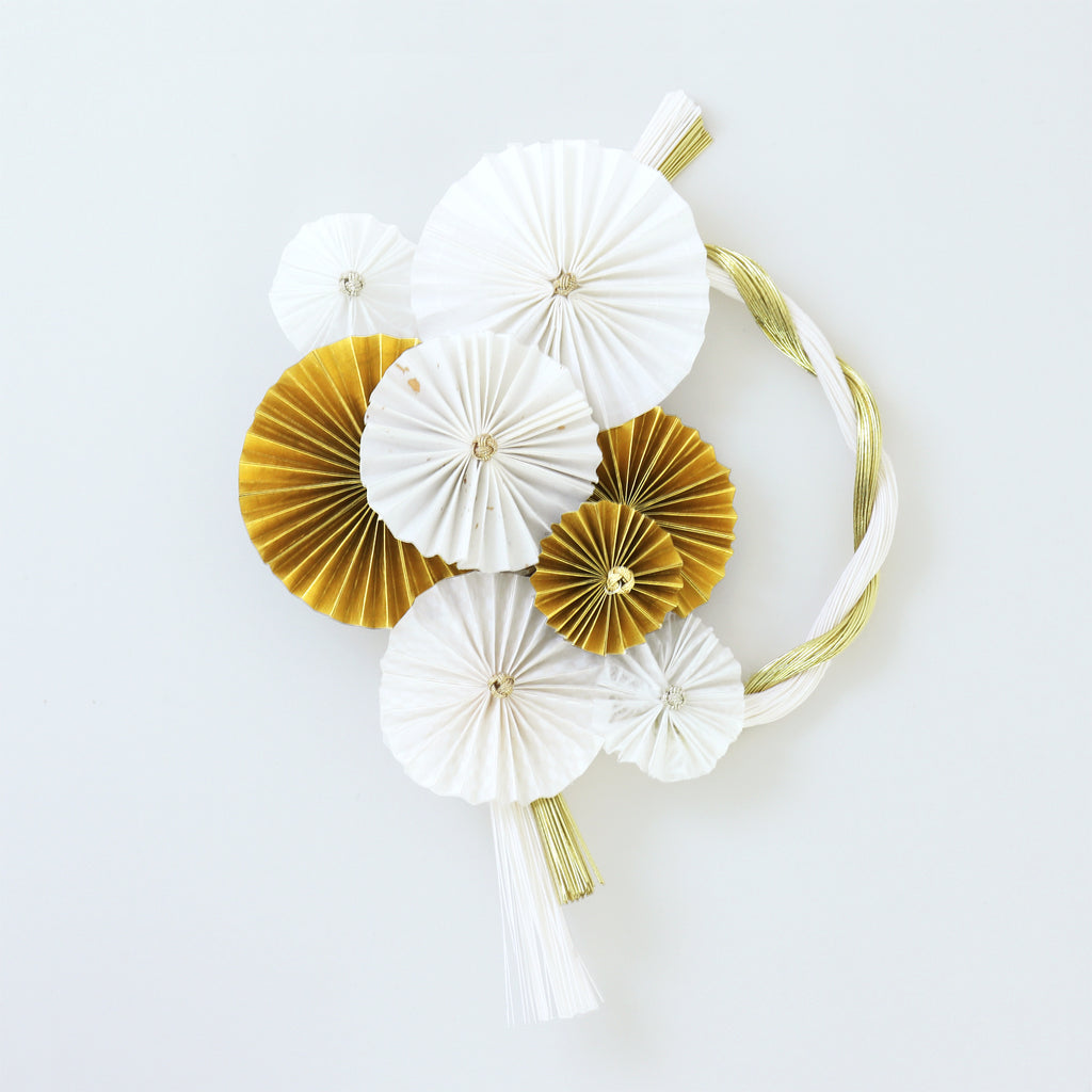 迎春 お正月飾り 水引細工 水引飾り 金 白 縦型 お正月リース 玄関 インテリア森田和紙オンラインショップ 倭紙の店。