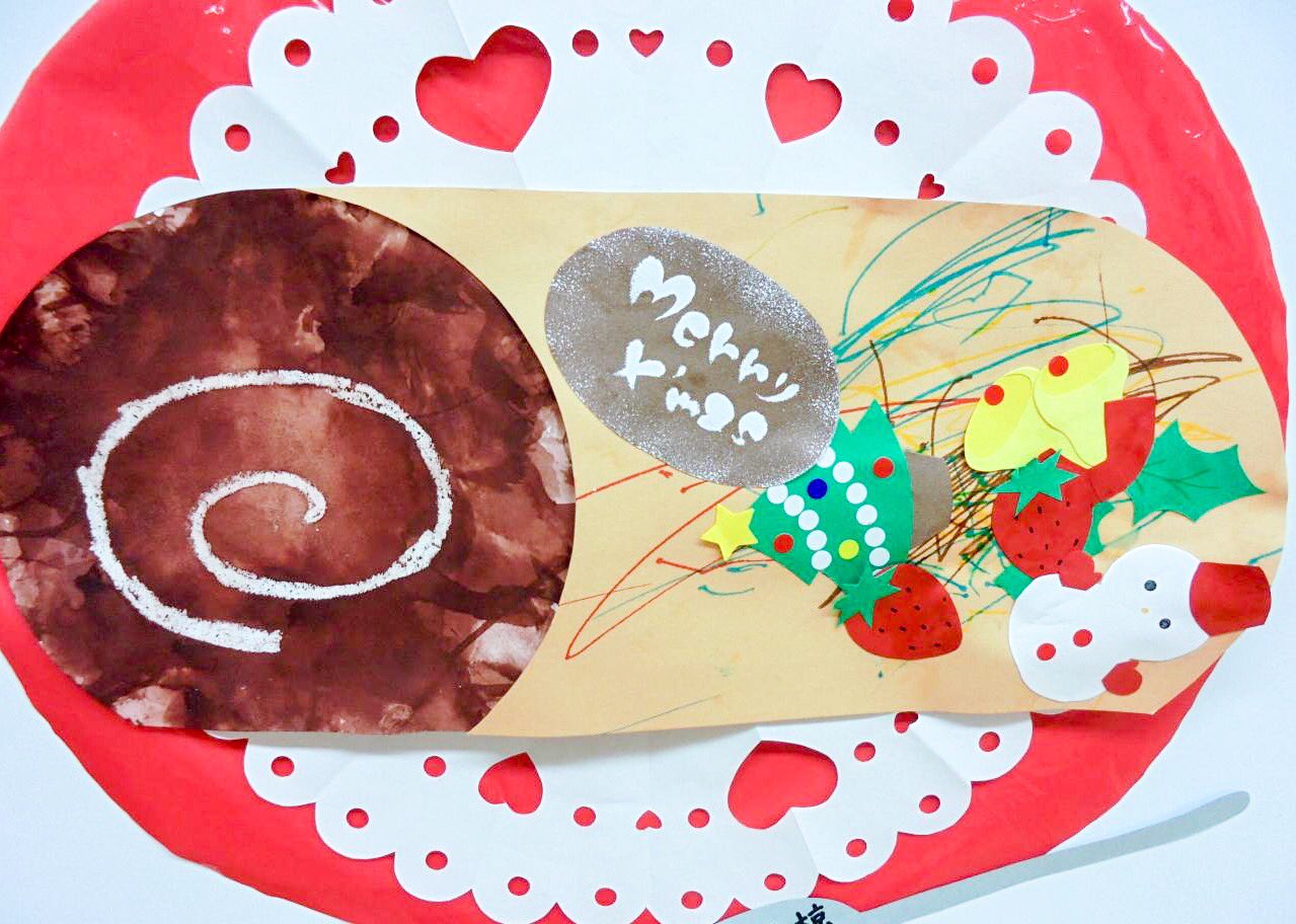 🎂12月制作の様子🎅 12月の制作でケーキのトッピングをのりで貼りました🌼 「いちご〜🍓」 「チョコだ〜🍫」と嬉しそうに貼ってました☺️☺️ スポンジはフォークを使って模様を付けました 𐩢𐩺 ☆~~~~~~~~~~~~~~☆認可保育園名古屋市中村区中村区。