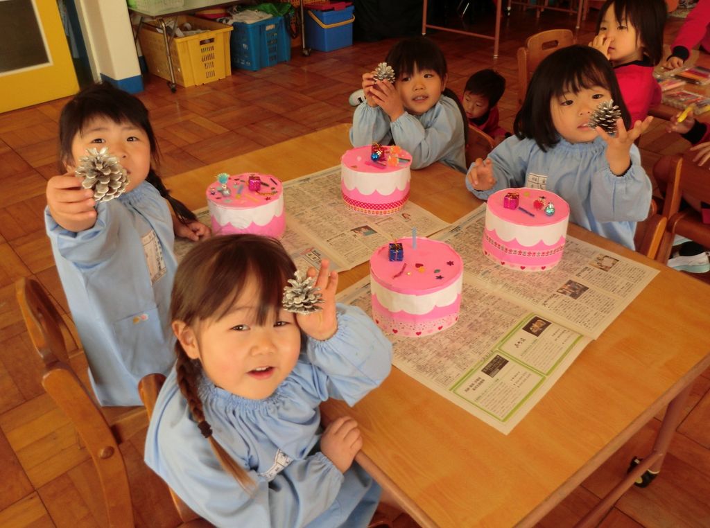 Enjoy! ひまわり幼稚園: 12月11日 クリスマスケーキ製作☆ ちゅーりっぷ。