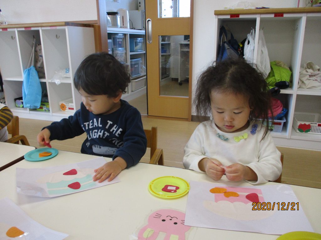 クリスマスケーキの制作をしました🎂 - 社会福祉法人葵福祉会亀井野保育園。