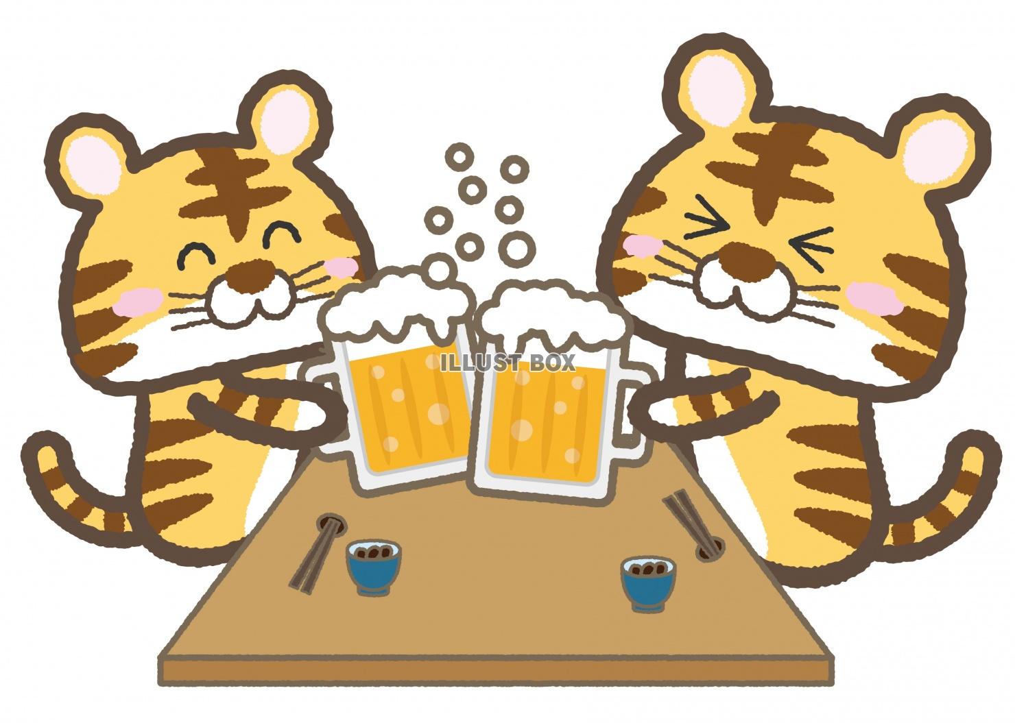 忘年会、新年会などの宴会でビールで乾杯する蛇と龍のイラスト素材255640171- イメージマート。