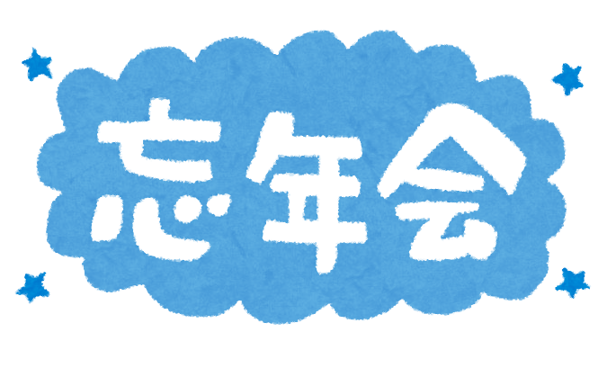 忘年会 文字イラストなら、小学校・幼稚園向け・保育園向けのかわいい無料イラストお試しフリー素材 カット がいっぱいの安心サイトへどうぞ。