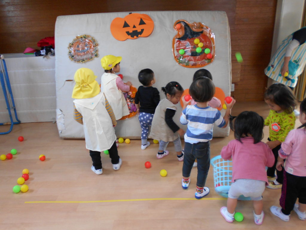 おひさまⅠ組 1歳児 ハロウィン玉入れ。