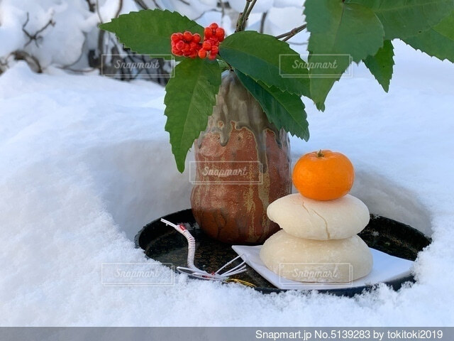 雪の中の正月飾りの写真・画像素材-Snapmart スナップマート。