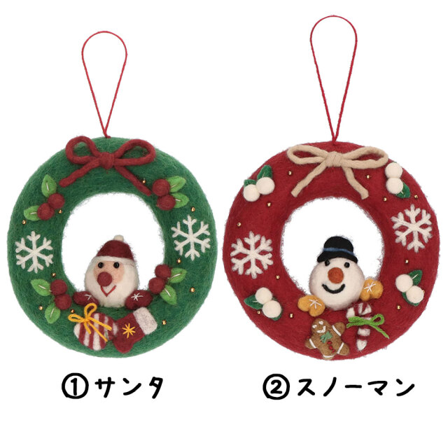 フェルト クリスマス リース サンタ 羊毛フェルト ネパール製。