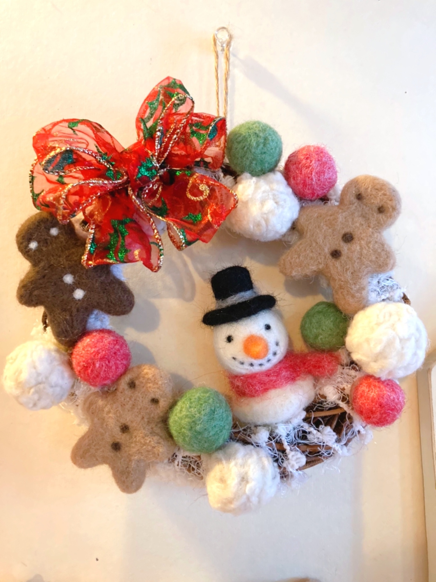 羊毛フェルト クリスマスリースくまちゃんメイキング Christmas needlefelting ハンドメイド。