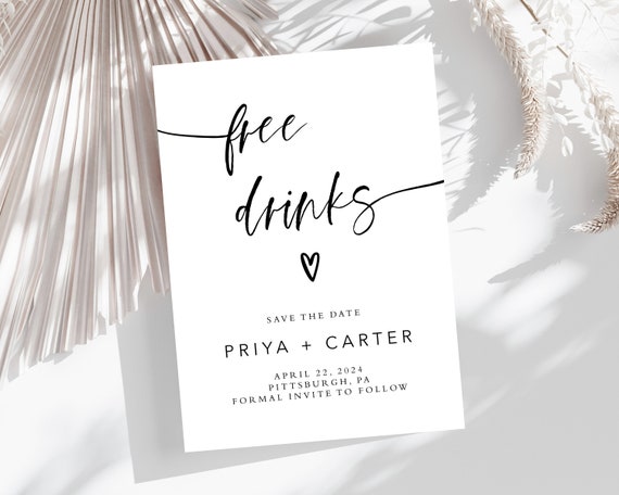 無料ドリンク付きSave the Date、印刷可能な招待状、面白いSave the Date、かわいいSave theDate、結婚式、ミニマリスト、モダン、クリエイティブ、ユニーク - Etsy 日本。