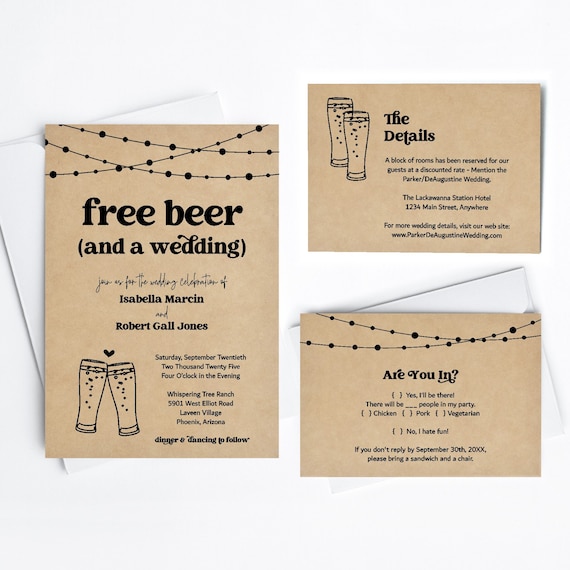 面白い結婚式招待状テンプレート - 無料のビールの楽しい醸造所の印刷可能なセット - 素朴なクラフト紙インスタントダウンロード PDF スイート- ライト - Etsy 日本。
