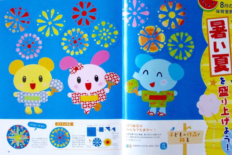 みんなでたまや〜! 8月壁面飾り 花火ゆめかけの可愛い保育書・イラスト・壁面・似顔絵。