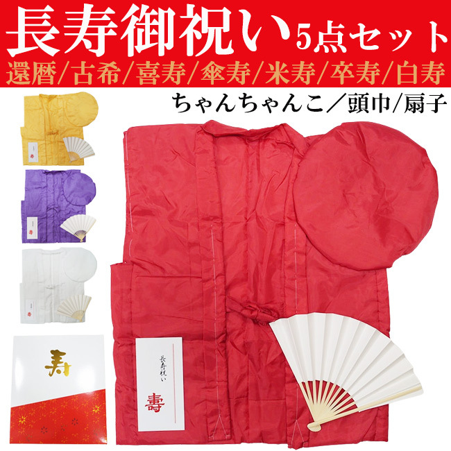 古稀・喜寿・傘寿・卒寿祝い紫長寿祝い ちゃんちゃんこセット お祝いセットちゃんちゃんこと大黒頭巾と末広にお祝いの栞と化粧箱の5点セット 送料無料 <R> メール便不可京都きもの町。