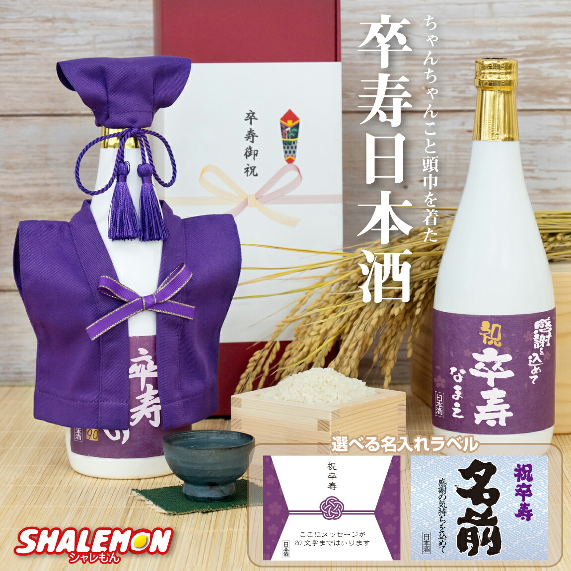 卒寿祝い 名入れ ちゃんちゃんこ 酒 日本酒 白瓶卒寿だもの ミニちゃんちゃんこ 帽子 房紐付き 白ボトル デザイン選べる卒寿ラベル720ml紫 国産清酒 純米大吟醸酒 兵庫県産米使用 山田錦 精米歩合:50% 濃醇辛口 お祝い プレゼント ギフト 贈り物 swb。