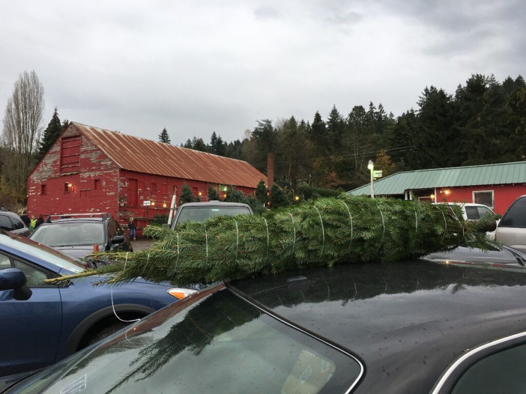 車の屋根にクリスマスツリーを乗せて運ぶ人々微事ログ・オルタナティブ。