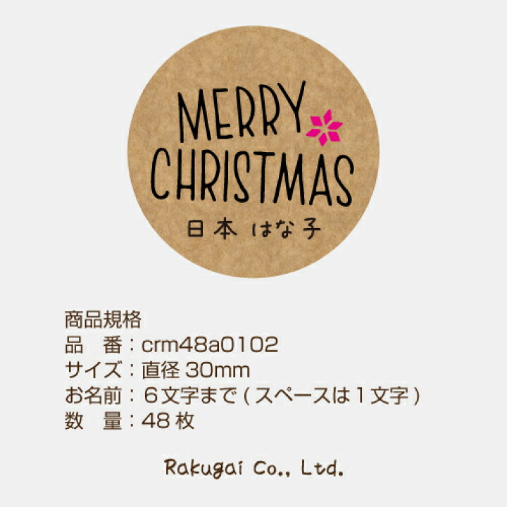 楽天市場名入れ メリークリスマス ギフト シール ステッカー クラフト ラッピング Merry Christmas ラベル おしゃれ直径:30mm 48枚×1シート□ 6文字まで スペースは1文字 crm48a0102□ : ラクガイ 楽天市場店。