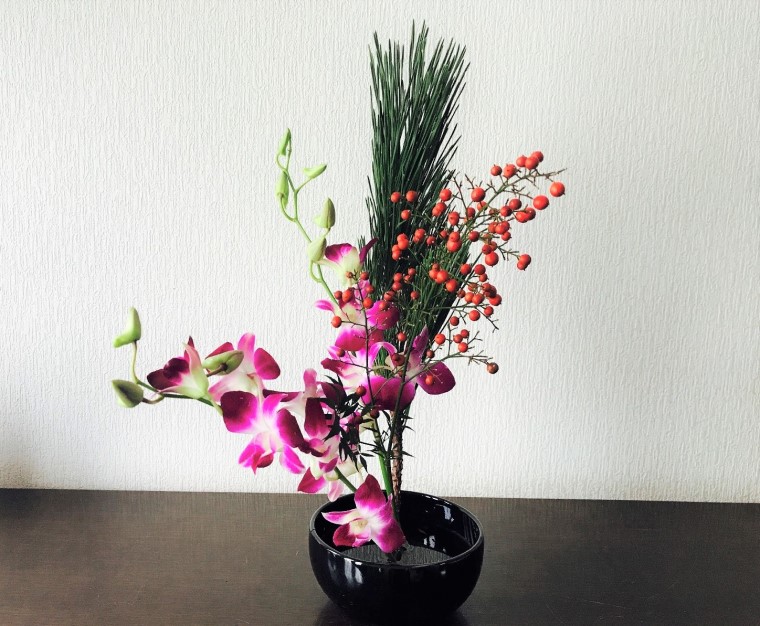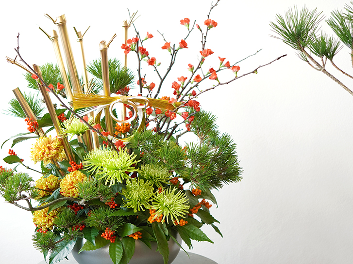 お正月の花 縁起の良いお正月の花の意味。松、千両、胡蝶蘭、菊、バラ、柳、竹など フラワーアレンジメント教室 横浜。