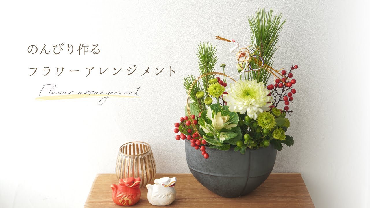 お正月のフラワーアレンジメントの作り方 簡単でかわいい‼花づくし 色々なお花を楽しみつくします❣。