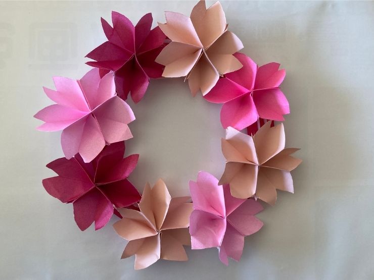 折り紙で桜のリース 簡単な作り方で壁飾りにも♪かんたん工作・折り紙☆選り好み。