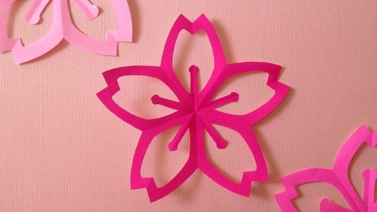 Origami sakura flower instruction 折り紙桜の花簡単な切り方。