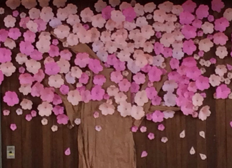 さくら 桜 サクラ 花 春 卒業 入学 壁面 壁面飾り 折り紙 切り紙。