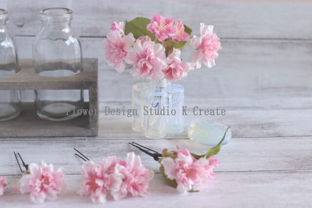 即発送可 ピンクの八重桜の髪飾り 3本ウェディング 桜 サクラ 卒業式 入学式 さくら 髪飾り 前撮り 袴 和装 着物 成人式FlowerDesign Studio K Create。