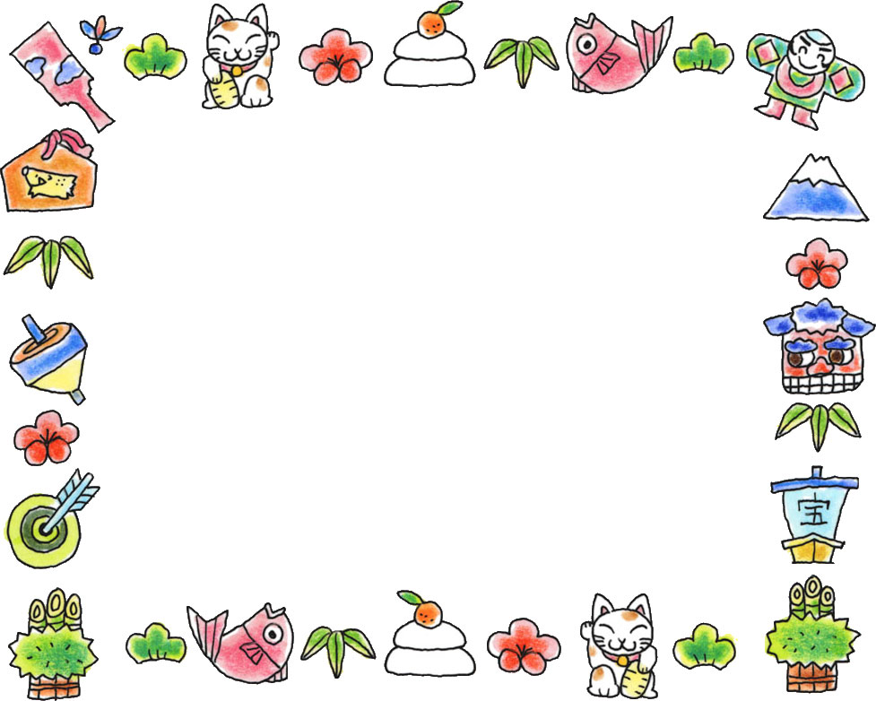 お正月の枠・フレームイラスト カラー園だより、おたよりで使えるかわいいイラストの無料素材集 イラストだより。