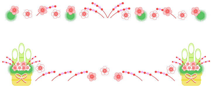 かわいい門松の上下フレーム<お正月・年末年始・年賀状・縁起物・1月・枠・デコレーション・飾り・和>お正月に使えるフレーム素材無料 イラスト素材TemplateBox。