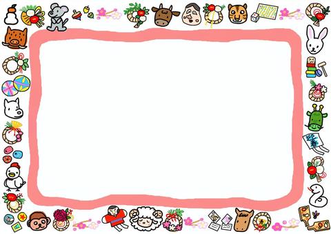 お正月のイメージのフレーム・枠素材:イラスト無料。