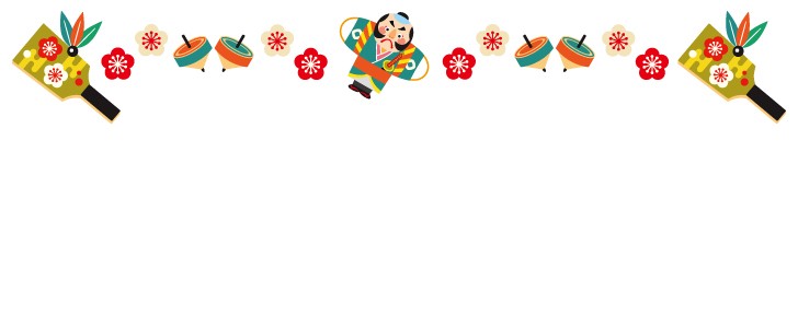 お正月遊びの上下フレーム<お正月・やっこだこ・こま回し・コマ・羽根つき・羽子板・梅・枠・1月>お正月に使えるフレーム素材無料 イラスト素材TemplateBox。