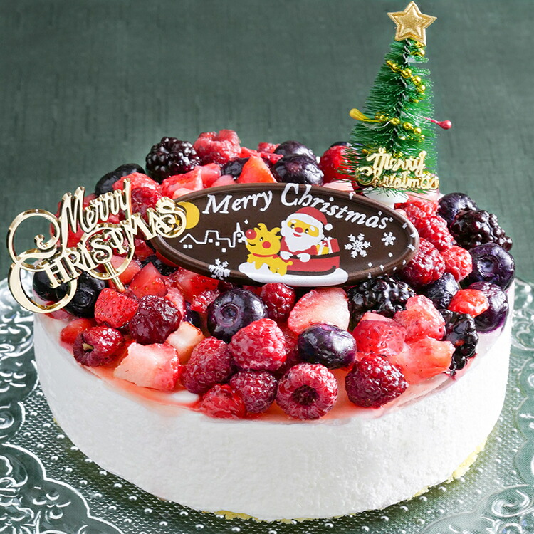 Xmasプレート付き ひいらぎ付き 冷凍 クリスマス ケーキ ホールケーキ フルーツ いちご イチゴ 苺 黄桃 桃 洋梨 梨 ぶどう ブドウ パインチェリー キウイ ブルーベリー スイーツ デザート 洋菓子。