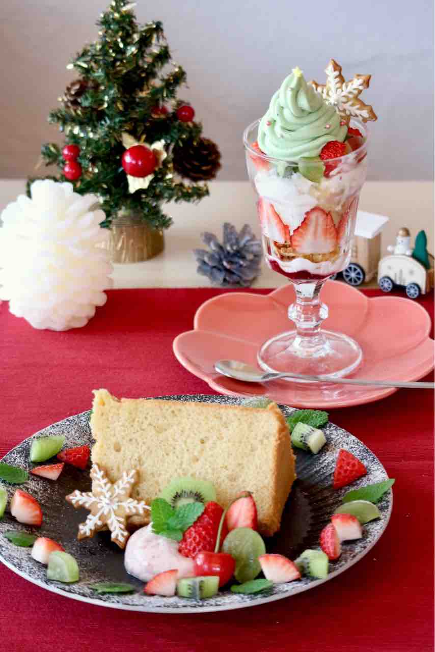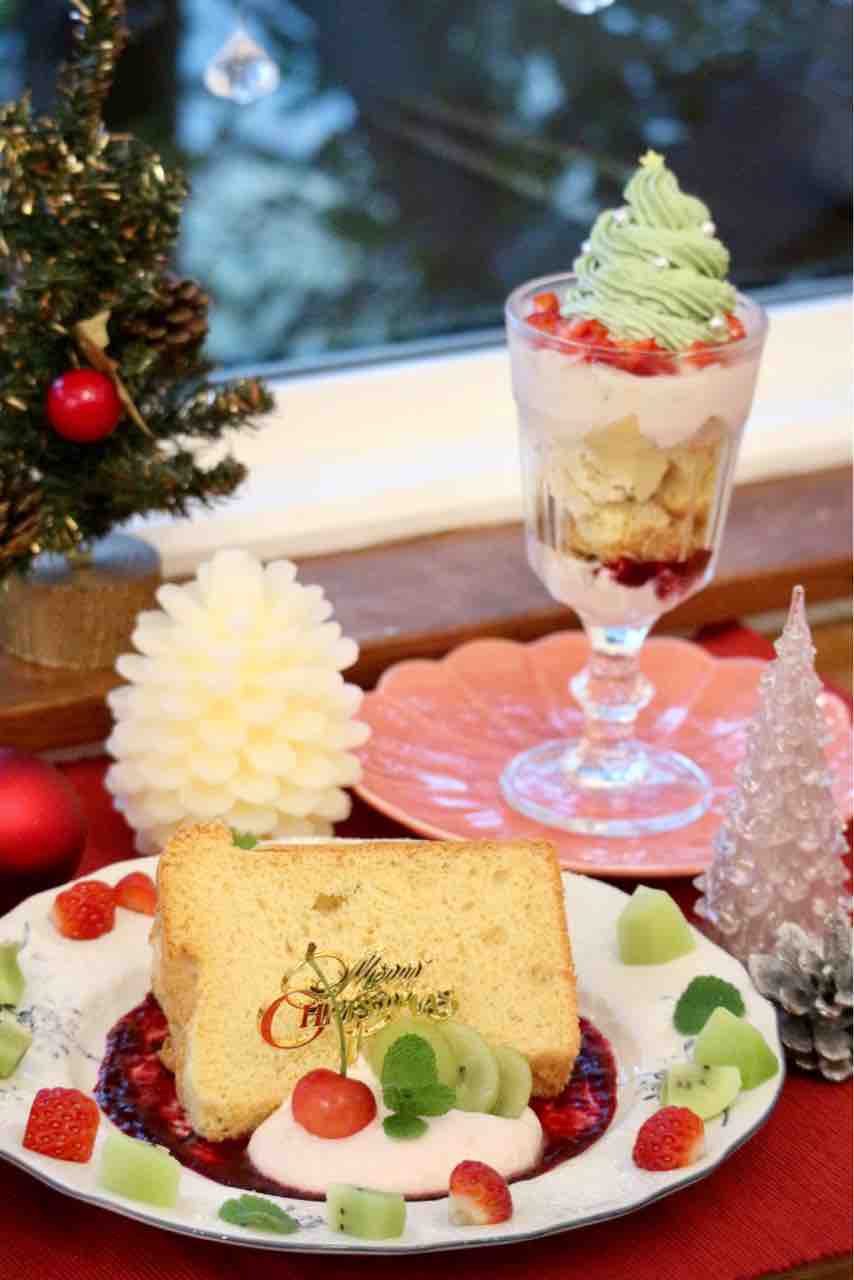 本日のメニュー・クリスマスプレート・クリスマススイーツプレートいちごクリームのシフォンケーキ・クリスマスツリーパフェ : CafeCherryblossom。