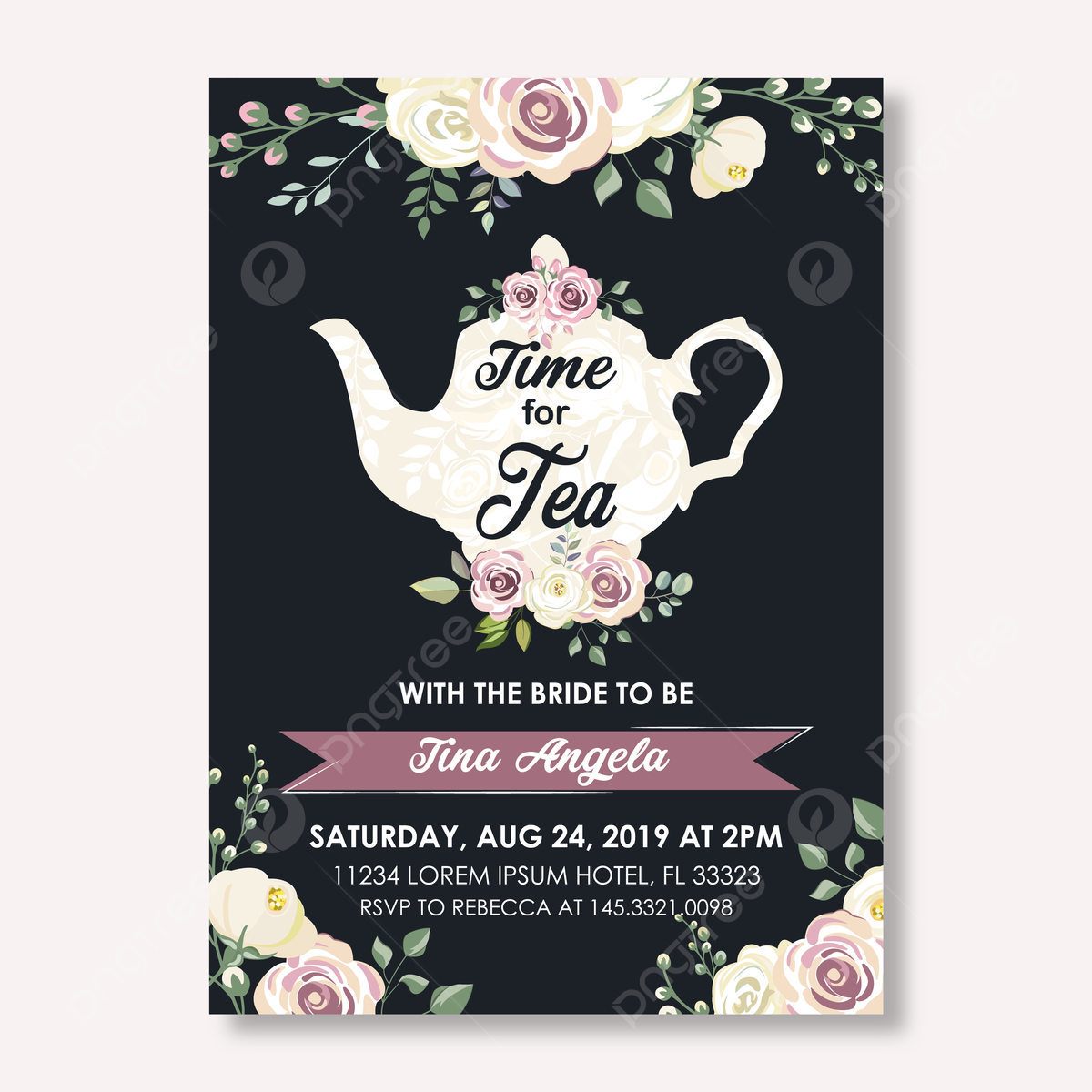 ティーパーティーの招待状のテンプレートイラストテンプレート素材PSDダウンロード。