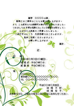 素敵*結婚式招待状テンプレート 無料ダウンロード。