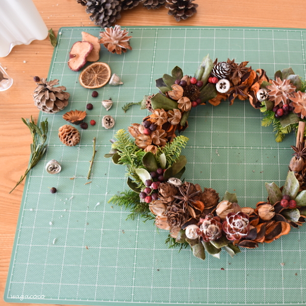 秋のリースを手作りしてみた!木の実や自然の材料を使った簡単な作り方を紹介月にサボテン。